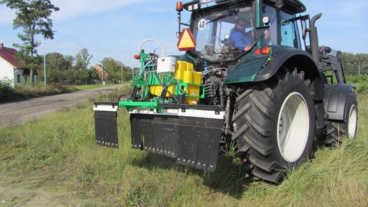 Wyróżnione Urządzenie OPUA przeznaczone jest do bezciśnieniowego aplikowania środków chemicznych na powierzchniach leśnych. Urządzenie zawieszane na TUZ ciągnika, rozprowadza przygotowany preparat pod niskim ciśnieniem do elementów rozprowadzających go po niszczonej roślinności. Regulacja podawania preparatu odbywa się przez elektroniczny układ sterowania. Dzięki czujnikom umieszczonym na elementach roboczych, układ w sposób automatyczny reaguje na zapotrzebowanie ilości podawanego preparatu w zależności od stopnia zachwaszczenia. Układ cieczowy pozwala na przygotowanie roztworu, aplikowanie go na powierzchni leśnej w czasie przejazdu oraz przepłukanie instalacji. Aplikowanie środków o wysokim stężeniu powoduje, że 60-litrowy zbiornik wody może pozwolić na całodzienną prace na powierzchni leśnej bez konieczności uzupełniania.