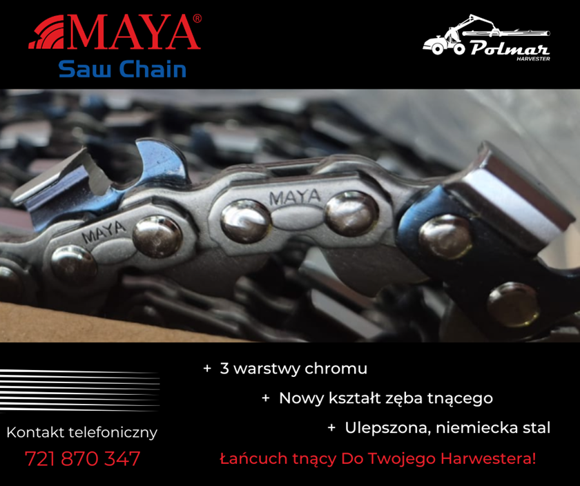 Łańcuchy tnące Maya i Longer – cenione za trwałość, precyzję cięcia i odporność na zużycie, doskonale sprawdzają się w intensywnych warunkach pracy.